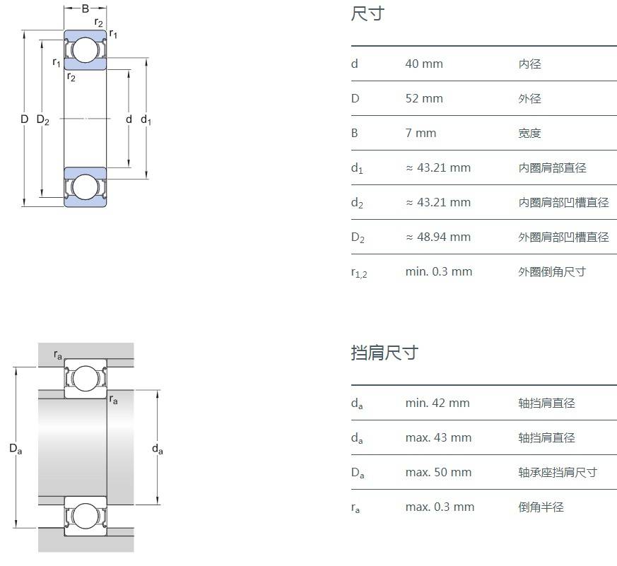 SIAIF不銹鋼深溝球軸承 S61808-2Z 詳細參數