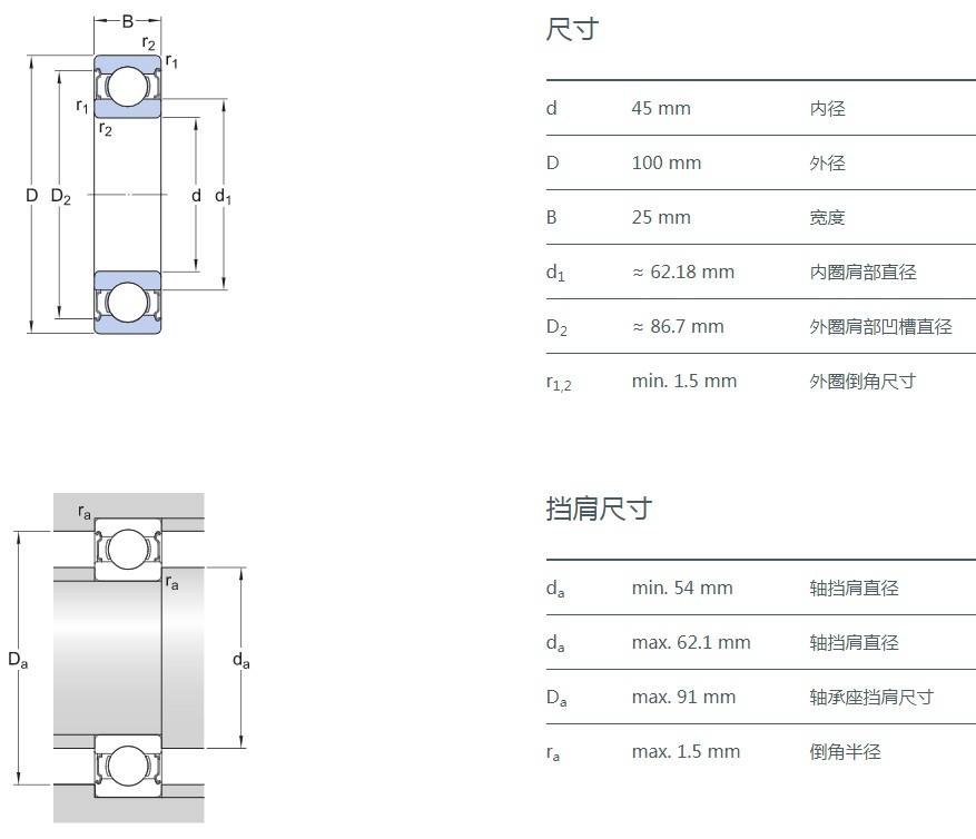 SIAIF不銹鋼深溝球軸承 S6309-2Z 詳細參數