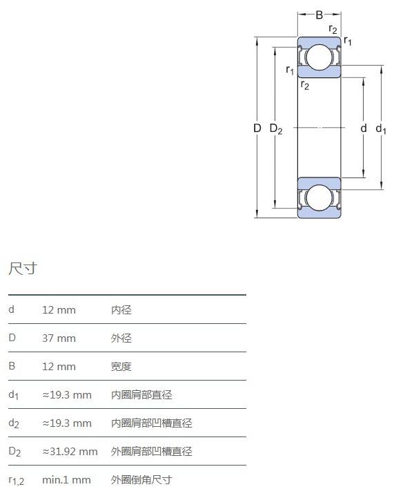 SIAIF不銹鋼深溝球軸承 S6301-2Z 詳細參數