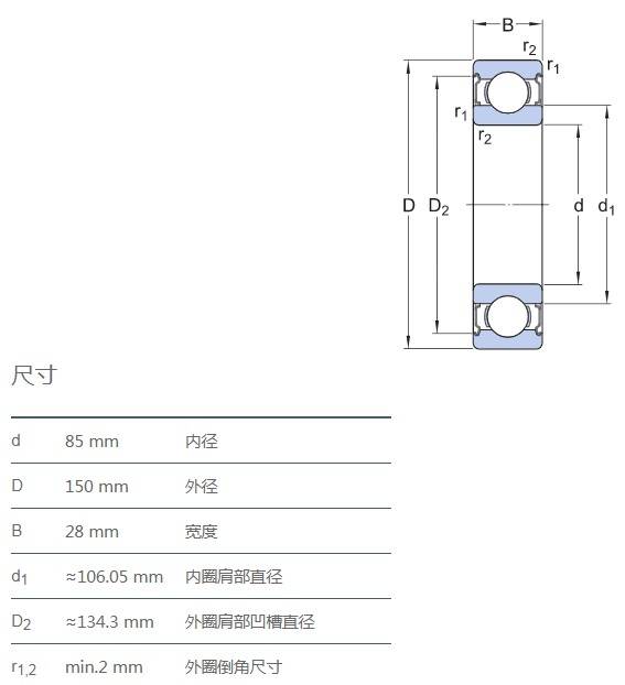 SIAIF不銹鋼深溝球軸承 S6217-2Z 詳細(xì)參數(shù)