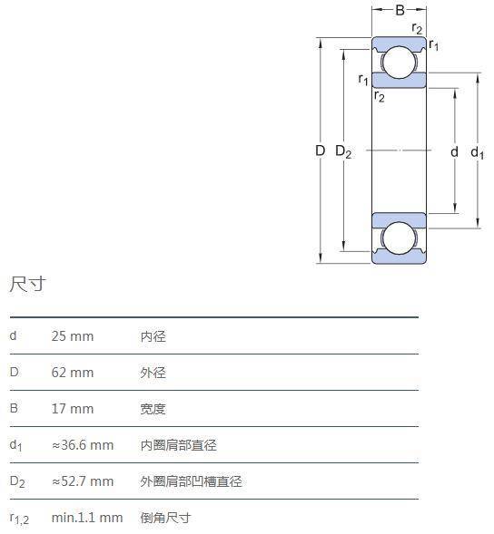 SIAIF耐高溫石墨自潤滑軸承 6305-2Z/VA201 詳細參數