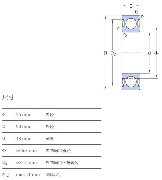 SIAIF耐高溫石墨自潤滑軸承 6011-2Z/VA208 詳細參數