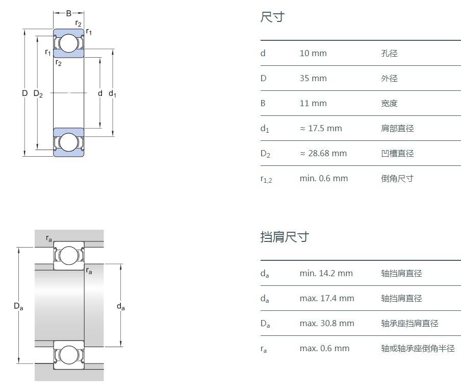 滿球軸承,由于在內圈及外圈上設計了填球口,可比深溝球軸承多裝球。因為有填球口,所以不適于軸向負荷大的用途。滿裝球軸承尺寸與62型及63型的單列深溝球軸承主要尺寸相同。除開放型外,也有鋼板防塵蓋ZZ型。另外,使用軸承時,盡可能將外圈的填球口位置作為非載荷圈。保持架為沖壓保持架。